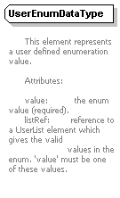 | source | <xsd:simpleType name="UserValueDataType"> <xsd:annotation> <xsd:documentation> Basic types that can be represented by user value entries and tables. int = Data entity is an integer ints = Data entity is a list of integers real = Data entity is a real reals = Data entity is a list of reals boolean = Data entity is a boolean (true/false) booleans = Data entity is a list of booleans reference = Data entity is a reference (anyURI) enum = Data entity is an enumeration. list = Data entity is a list item. </xsd:documentation> </xsd:annotation> <xsd:restriction base="xsd:NMTOKEN"> <xsd:enumeration value="int"/> <xsd:enumeration value="ints"/> <xsd:enumeration value="real"/> <xsd:enumeration value="reals"/> <xsd:enumeration value="boolean"/> <xsd:enumeration value="booleans"/> <xsd:enumeration value="string"/> <xsd:enumeration value="reference"/> <xsd:enumeration value="enum"/> <xsd:enumeration value="list"/> </xsd:restriction> </xsd:simpleType> |